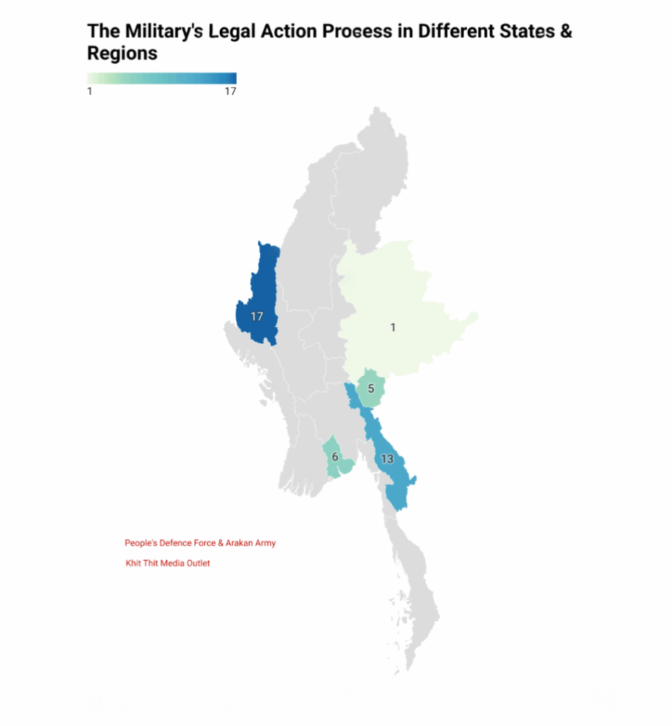 Moreover, the Arakan Army (AA) and PDF forces have been charged with the allegation of carrying out a “bomb attack” on a voter education event related to voting machines in Ayeyarwady Region. Khit Thit Media has also been charged with “incitement to destroy the election”